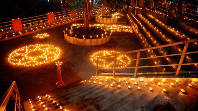 തുടർന്ന് എല്ലാവരെയും വിളക്കുകൾ തെളിക്കാൻ ക്ഷണിച്ചു. അവിടെ കൂടിയ പൊതുജനങ്ങളെല്ലാം വിളക്ക് തെളിക്കുന്നതിൽ പങ്കാളികളായി. തുടർന്ന് കരിമരുന്ന് പ്രയോഗവും, മധുര വിതരണവും നടത്തി.